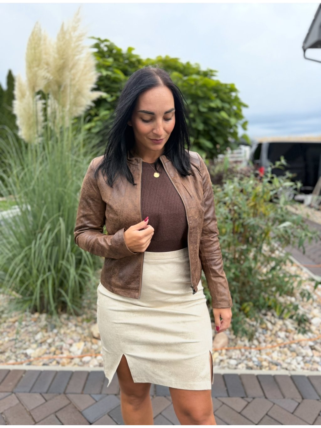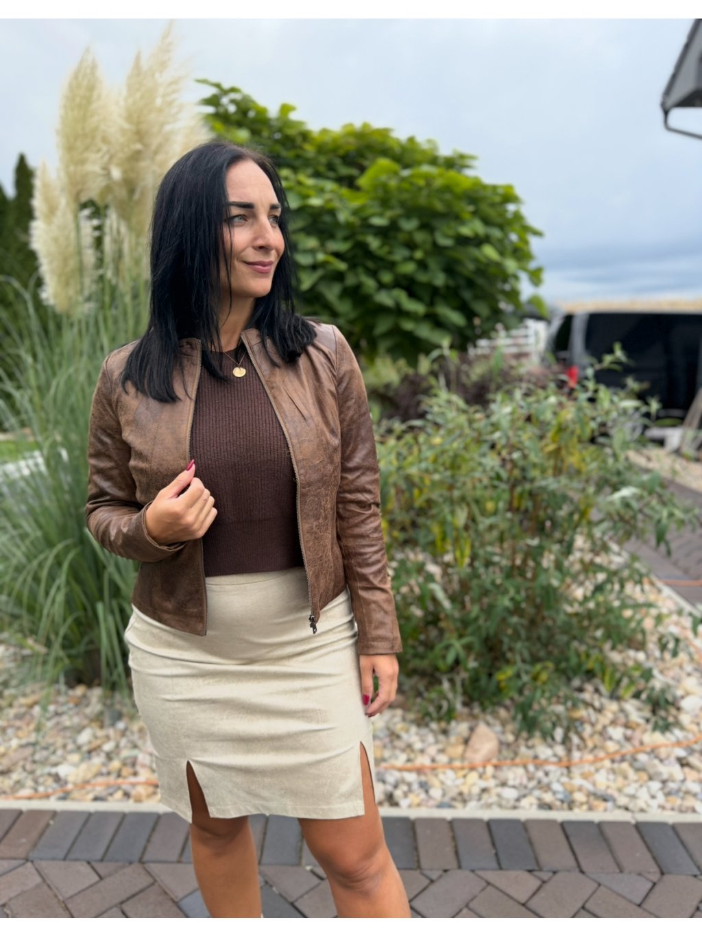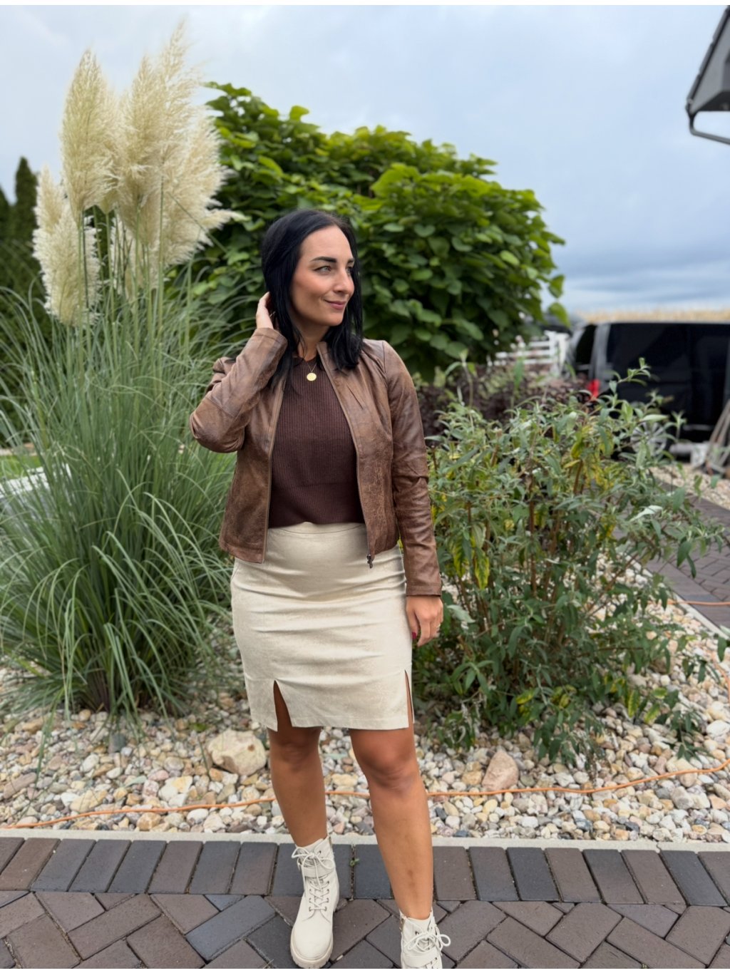 Béžový koženková sukně s rozparky – elegantní a nadčasová volba