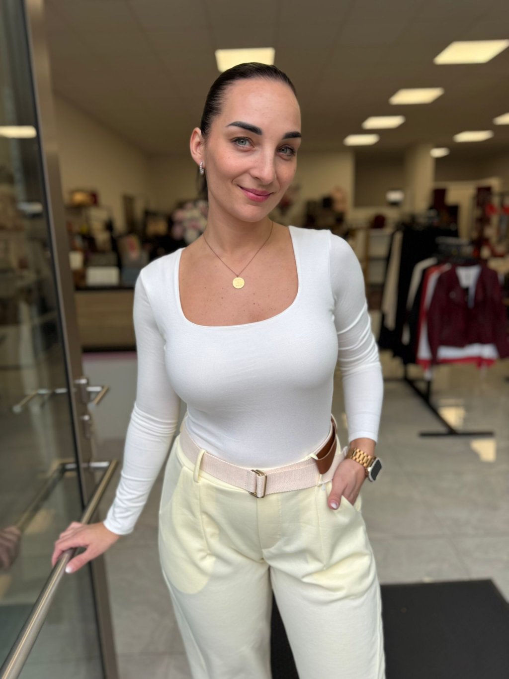 Čistý výstřih dodává ženskost a eleganci, zatímco dlouhé rukávy z něj dělají ideální kousek pro celoroční využití. Body se skvěle kombinuje s kalhotami s vysokým pasem, sukněmi i saky, což z něj činí univerzální základ šatníku.