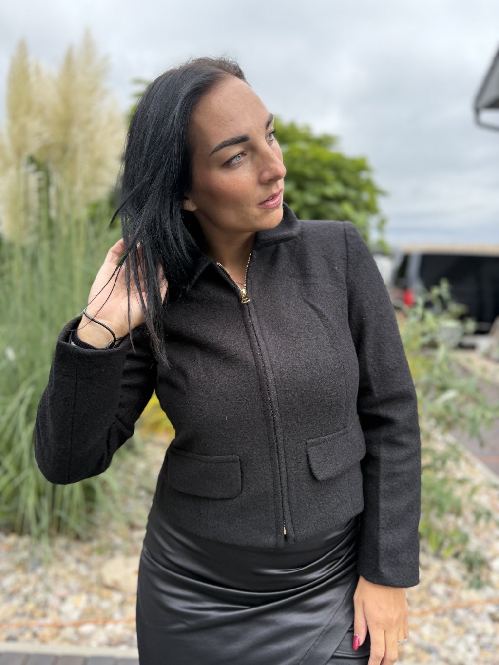 Dámský krátký kabát s elegantním zipem – černý, nadčasový a stylový