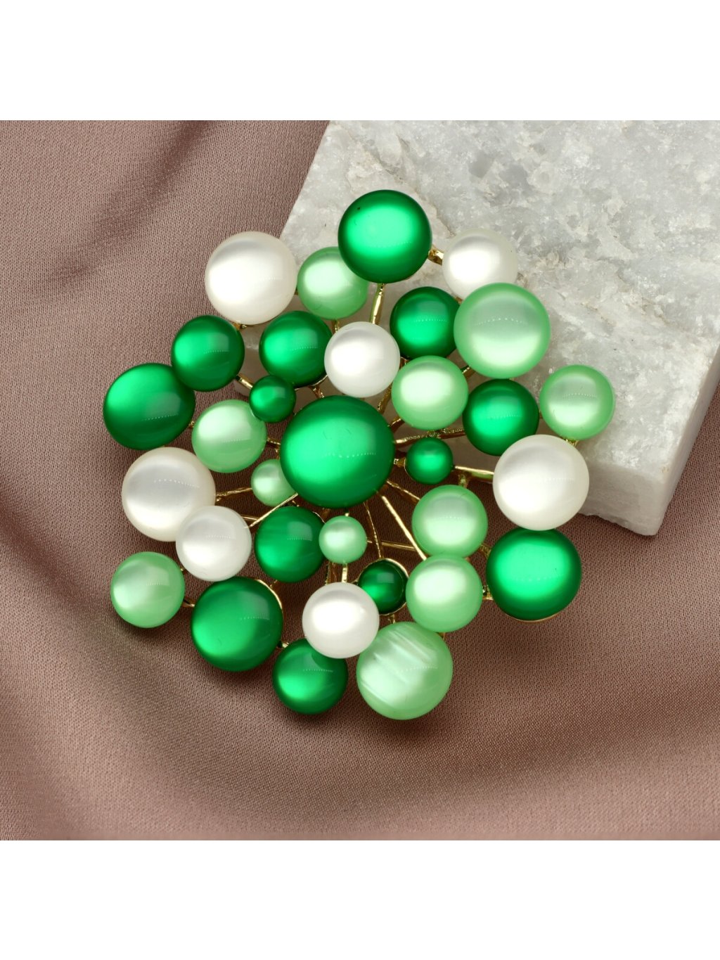 • Sytost a hloubka barev: Použití barvené pryskyřice dává broži specifický charakter, který působí velmi moderně a svěže.