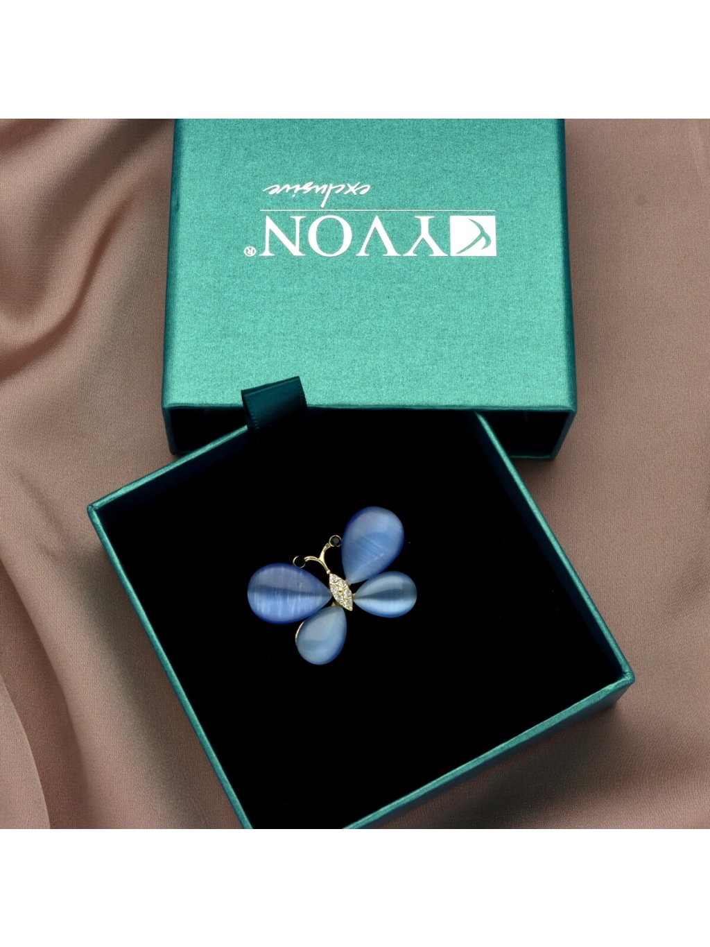 Dárek, který má styl: Brož obdržíte v krásné krabičce YVON s posuvnou zásuvkou. Elegantní balení dělá z tohoto motýla perfektní dárek, který vykouzlí úsměv na tváři.