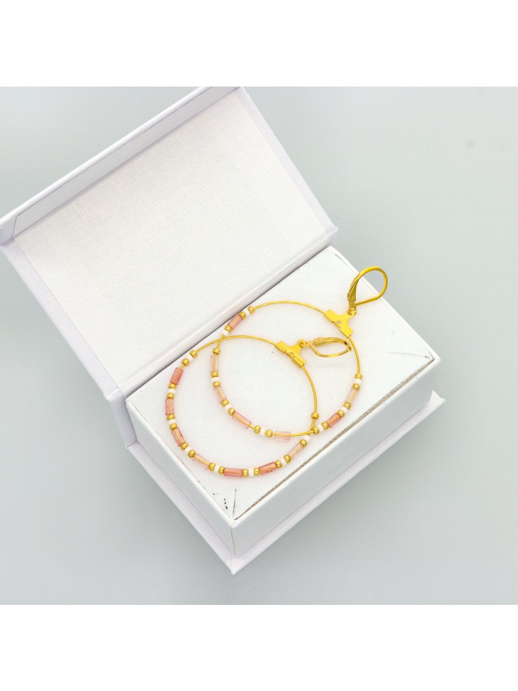 Krásné dámské náušnice s krystalem vodního melounu, vyrobeny z antialergické nerezové oceli 316L, pozlaceny 16K zlatem, v exkluzivní krabičce