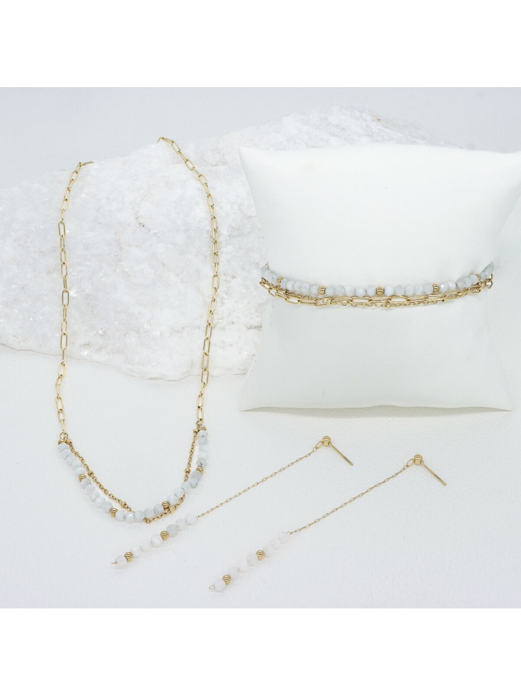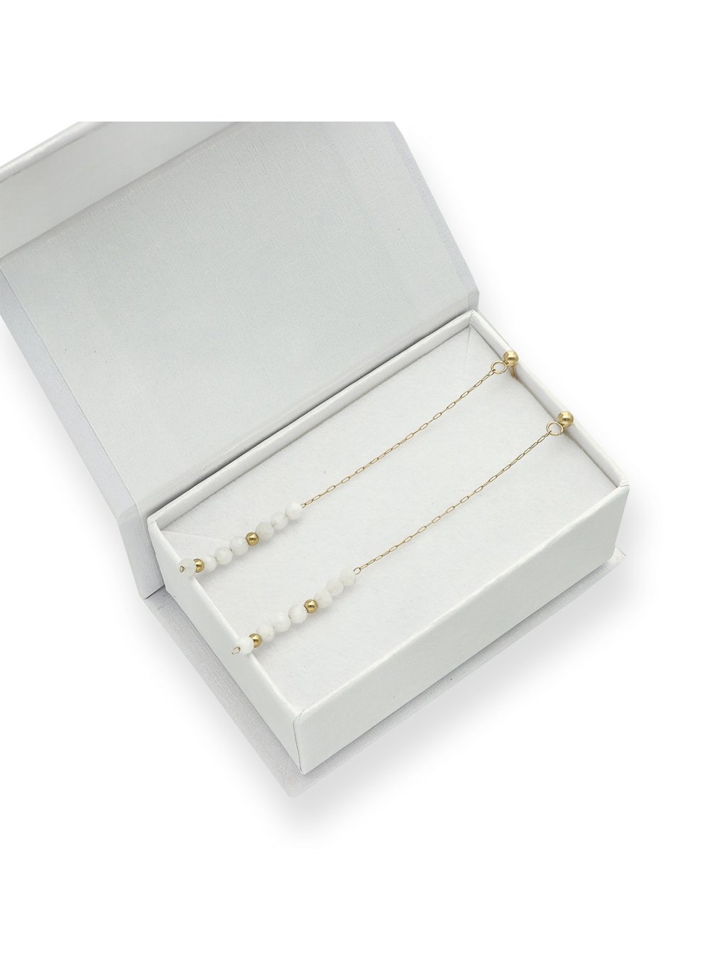 Dámské náušnice s měsíčním kamenem, vyrobeny z antialergické nerezové oceli 316L, pozlaceny 16K zlatem. V exkluzivní krabičce