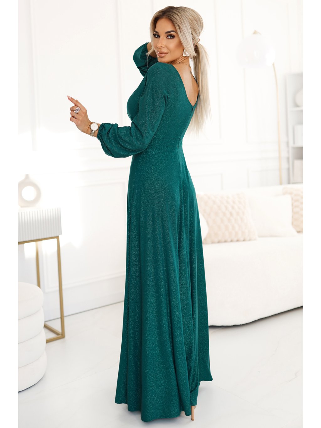 Elegantní třpytivé dlouhé šaty s výstřihem NELA