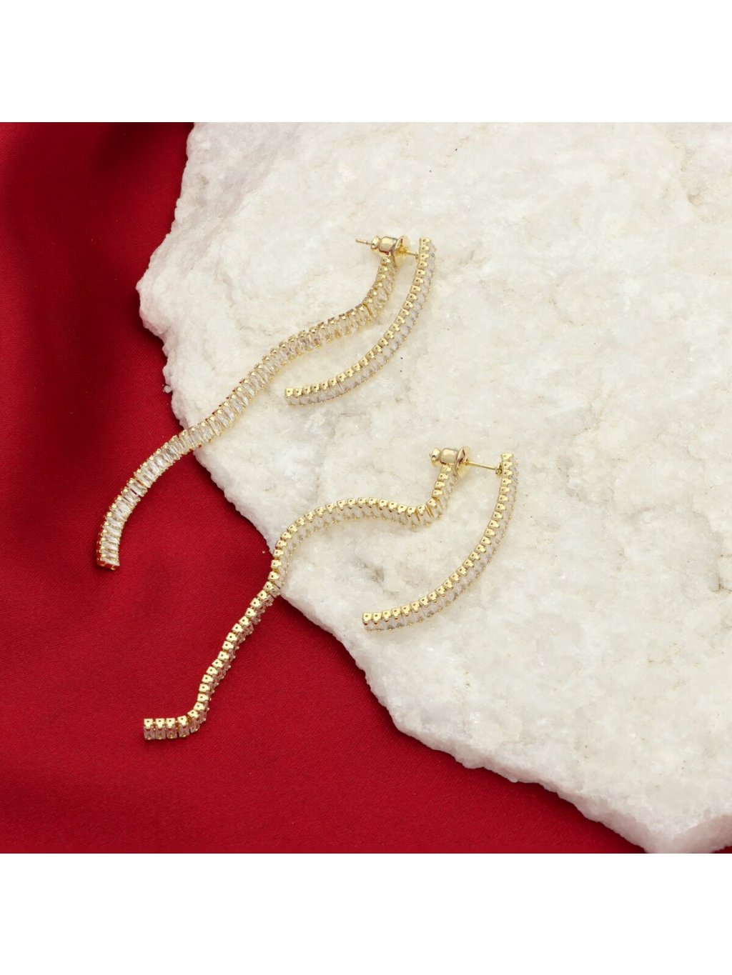 Elegantní večerní náušnice zdobené kubickou zirkonií, vyrobené z hypoalergenní mosazi. Skvělý doplněk k večerním šatům.