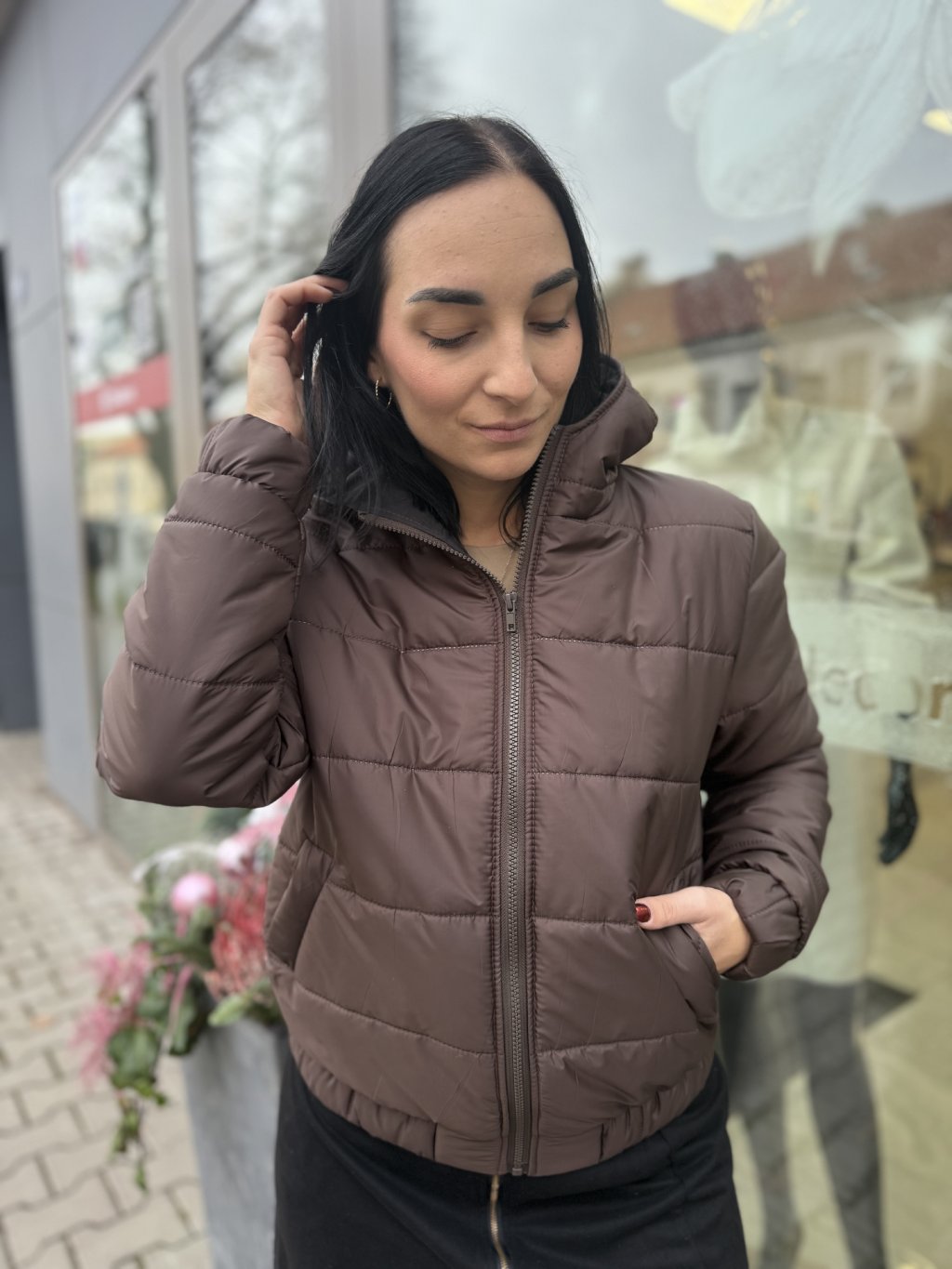 Praktická dámská prošívaná bunda v univerzálním hnědém odstínu je ideální volbou pro každodenní nošení v chladnějším počasí. Rovný, pohodlný střihnout poskytuje dostatek volnosti pohybu a je vhodný pro různé typy postavy.