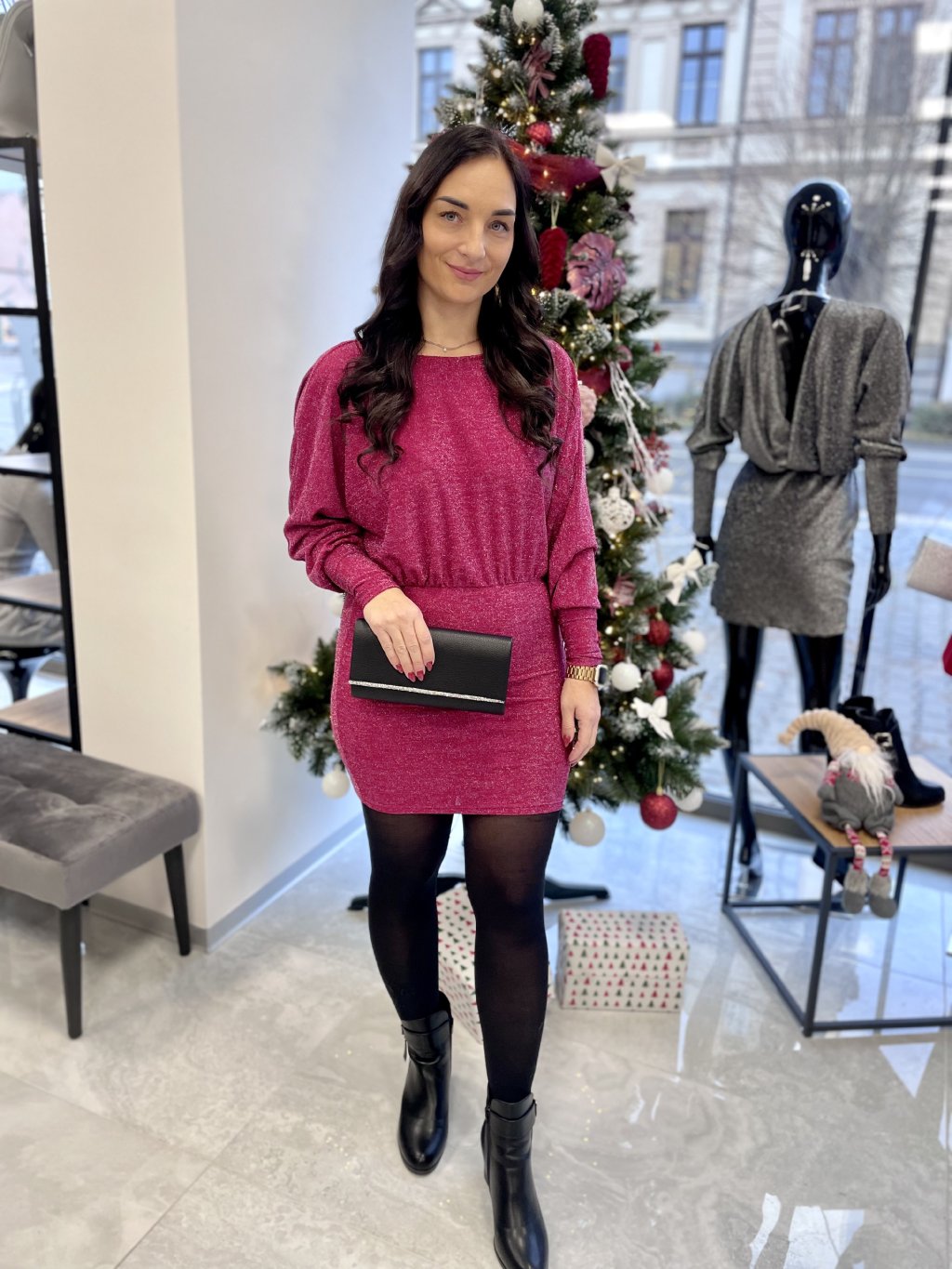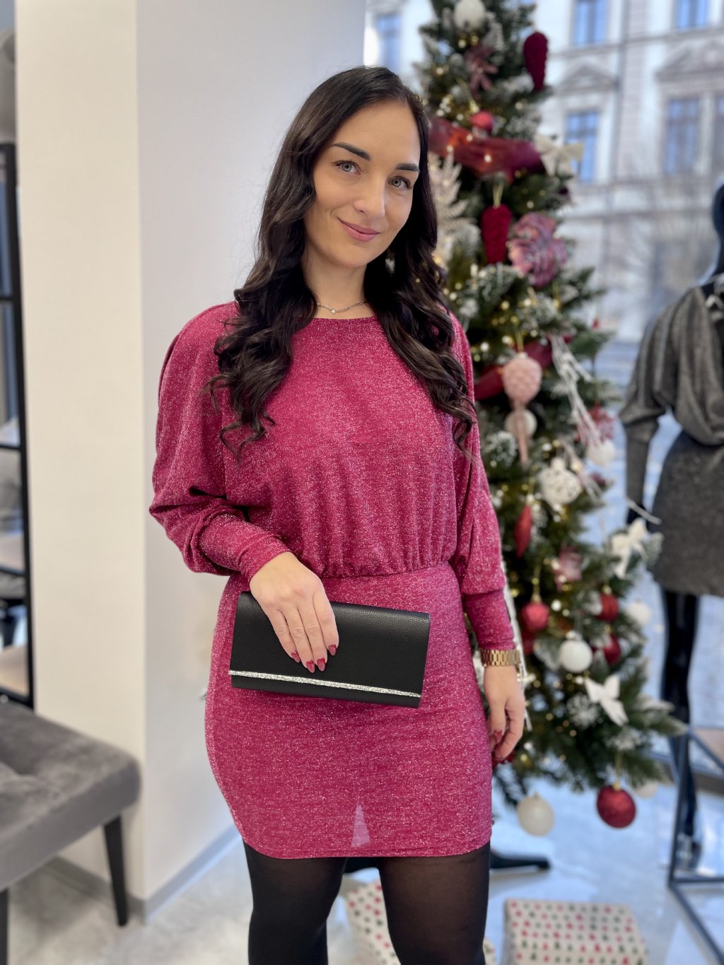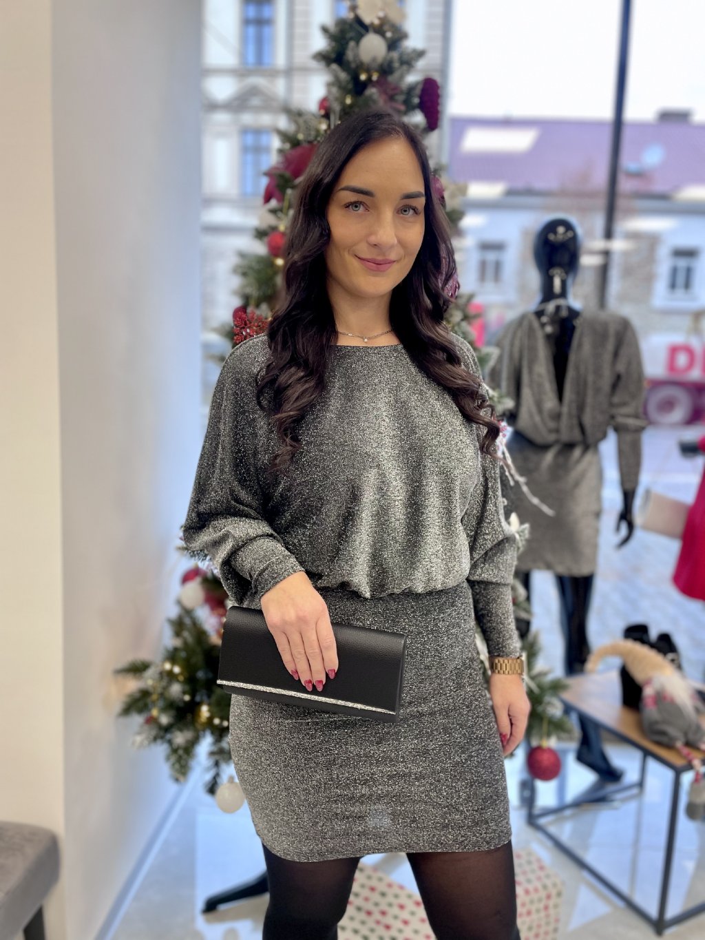 Třpytivé společenské šaty, přes boky úzké, na zádech hluboký výstřih
